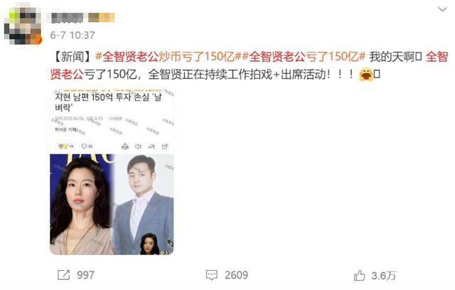 为了帮丈夫渡过难关,全智贤才结束了休息,重新出来拍戏、接代言,想赶紧赚钱填补亏损。