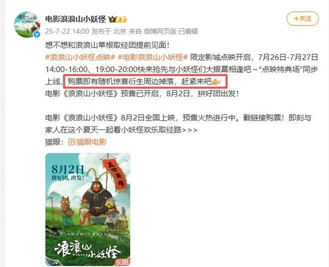 如今,不少片方也学聪明了,开始靠周边撬动观影热情。比如点映时,就特意设置了“物料特供场”,观众凭票就能领取一份主题周边。