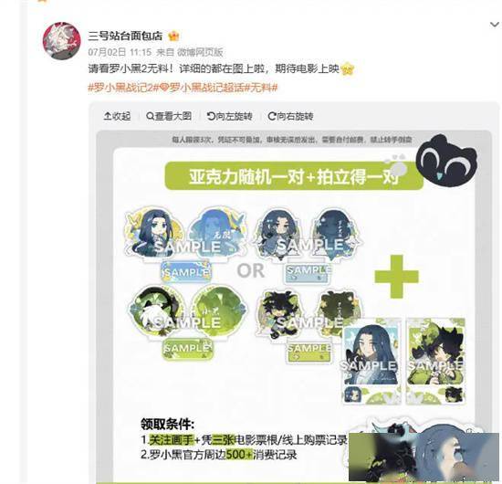 小灰运营着一个二三线城市的观影团,他非常直白:“不管‘官方’还是‘无料’,我们必须做——毕竟资源有限,争取不到太多官方周边,我们就自己来。只要片方不明确反对,我们就乐意搞。”