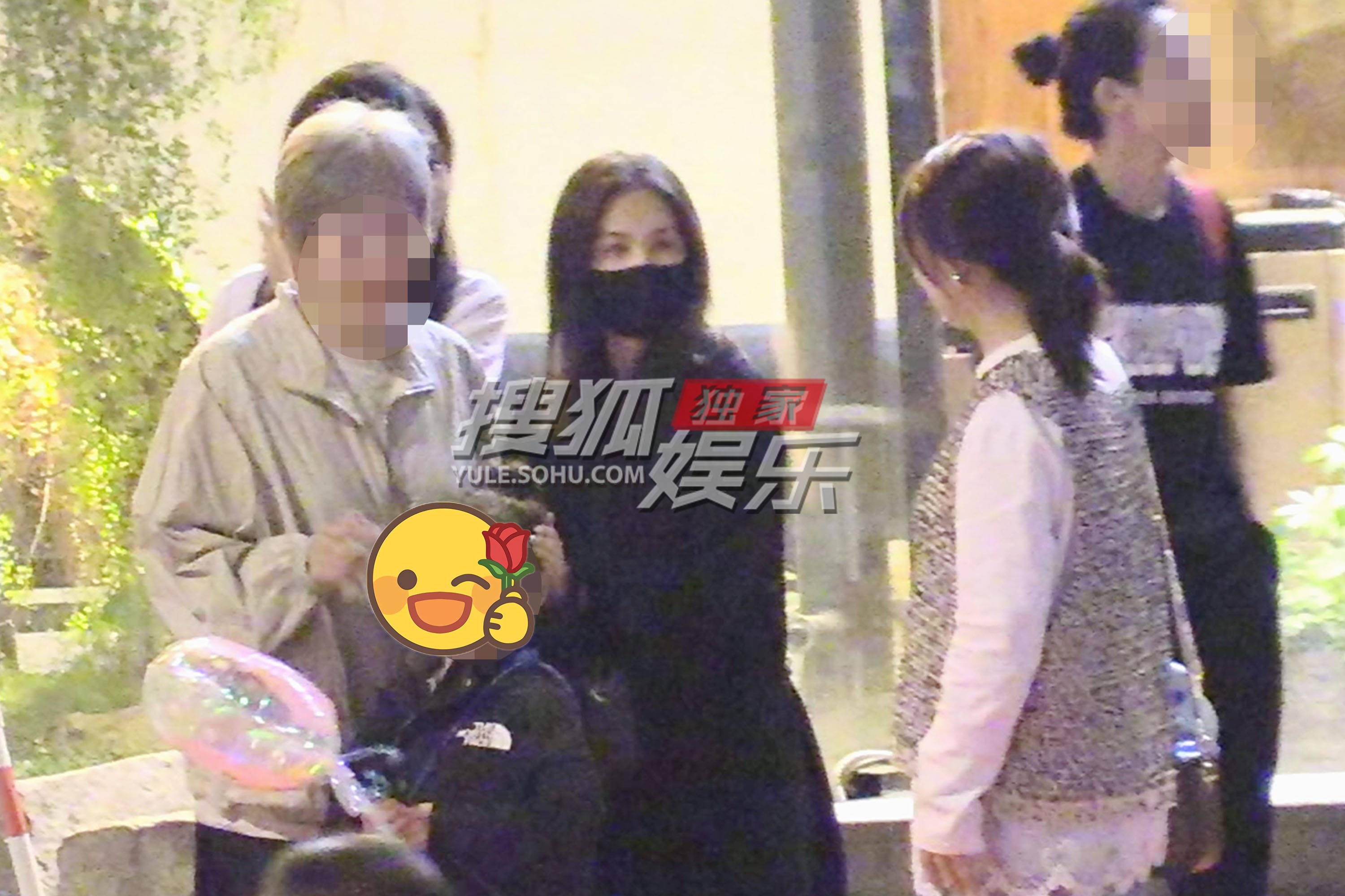 王子文和亲戚家小孩互动,满眼宠溺。