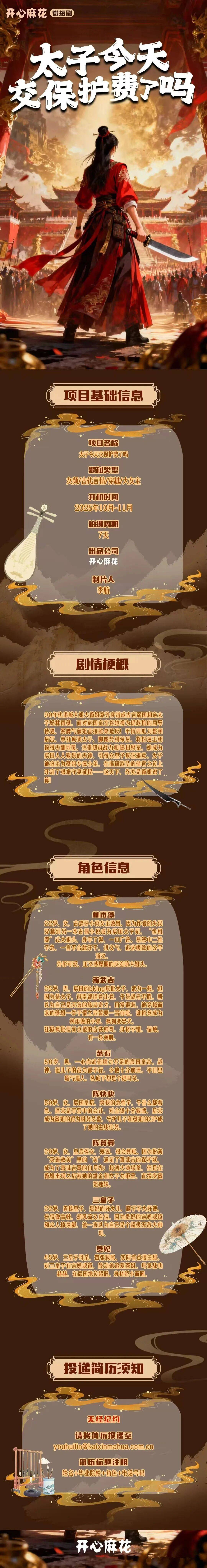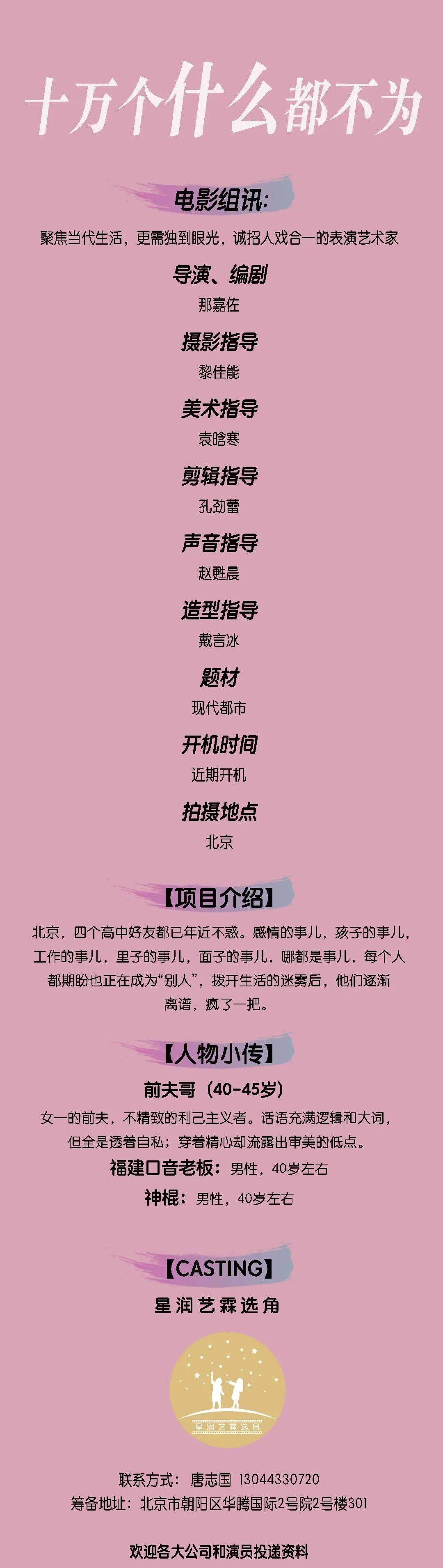 免责声明:戏客Seeker公众号(“本平台”)中全网组讯的信息、内容(“组讯信息”,包括但不限于影视项目名称、项目介绍信息、出品公司信息、导演信息、选角团队信息、拍摄相关信息、联系方式等)均来源于内容信息相关方提供或互联网公开信息。本平台不对组讯信息的真实性、准确性、完整性、及时性、关联性、适用性及安全性提供任何明示或默示的担保。请您谨慎参考或使用组讯信息,并确保您的人身、财产安全,本平台不对您使用或参考组讯信息而造成的后果承担任何责任。
