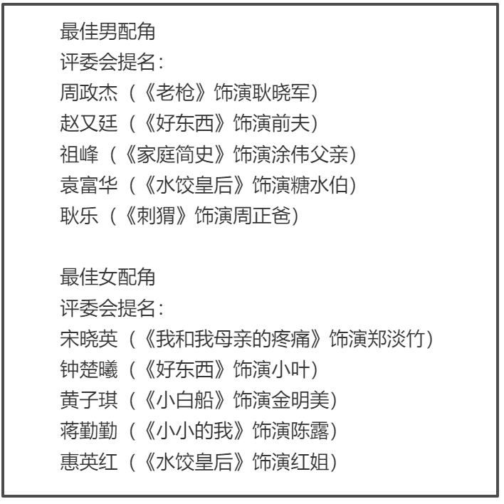 最佳男女配角提名倒是平稳。