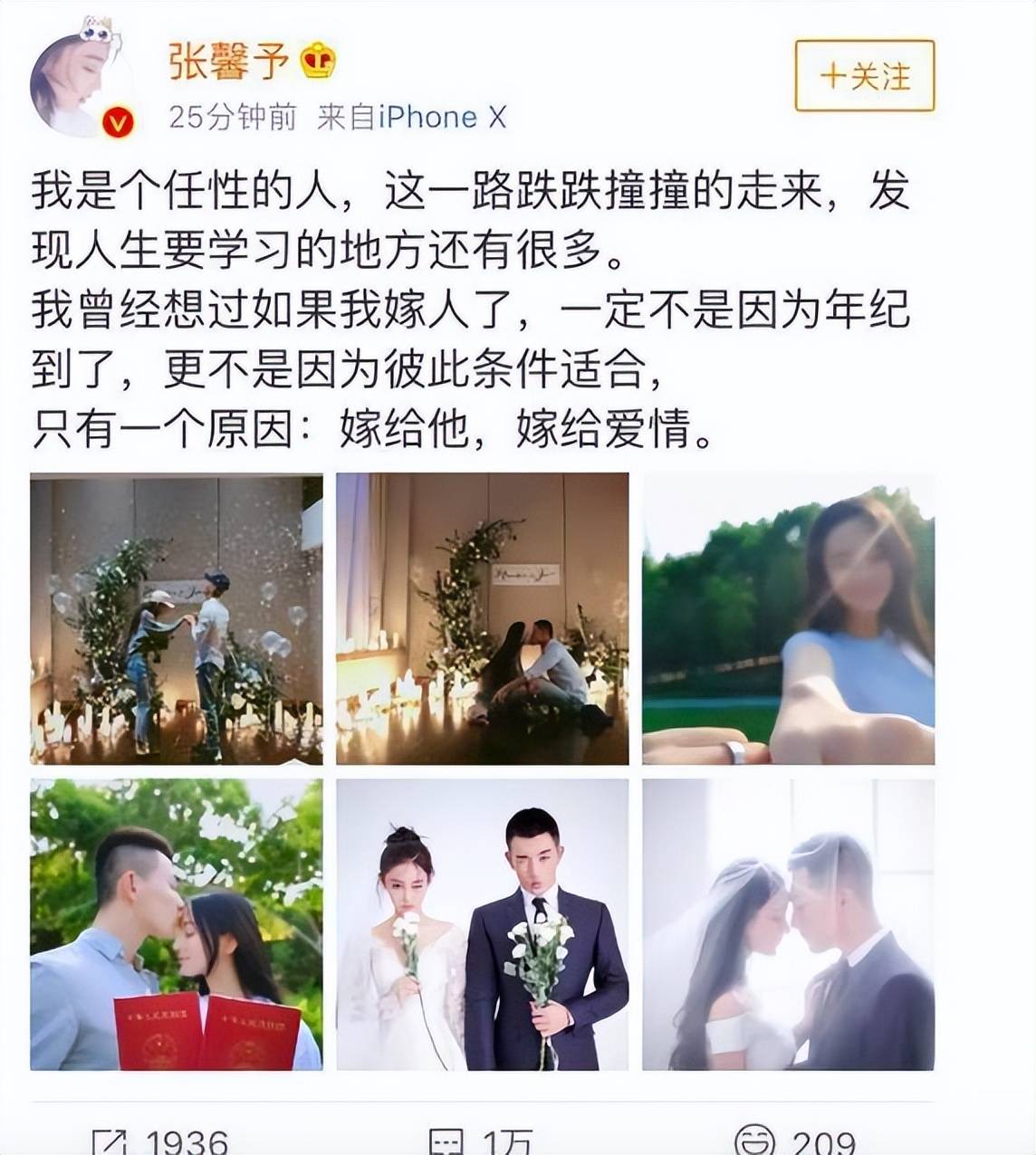 很突然的,在节目结束没多久,张馨予就公布了自己与何捷结婚的喜讯,不出意外遭到了网友的嘲讽和质疑,有人说张馨予黑料太多,情史丰富,配不上何捷,也有人觉得两人结婚太仓促了,很快就会出问题。