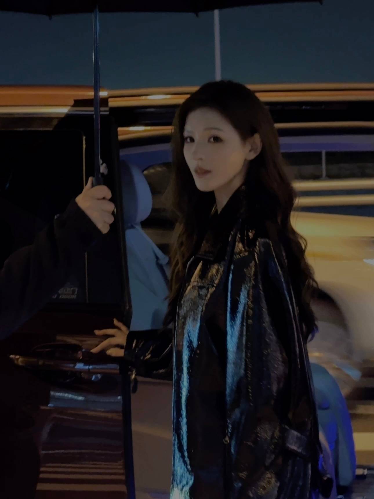 张予曦在夜色中回眸,妩媚动人。