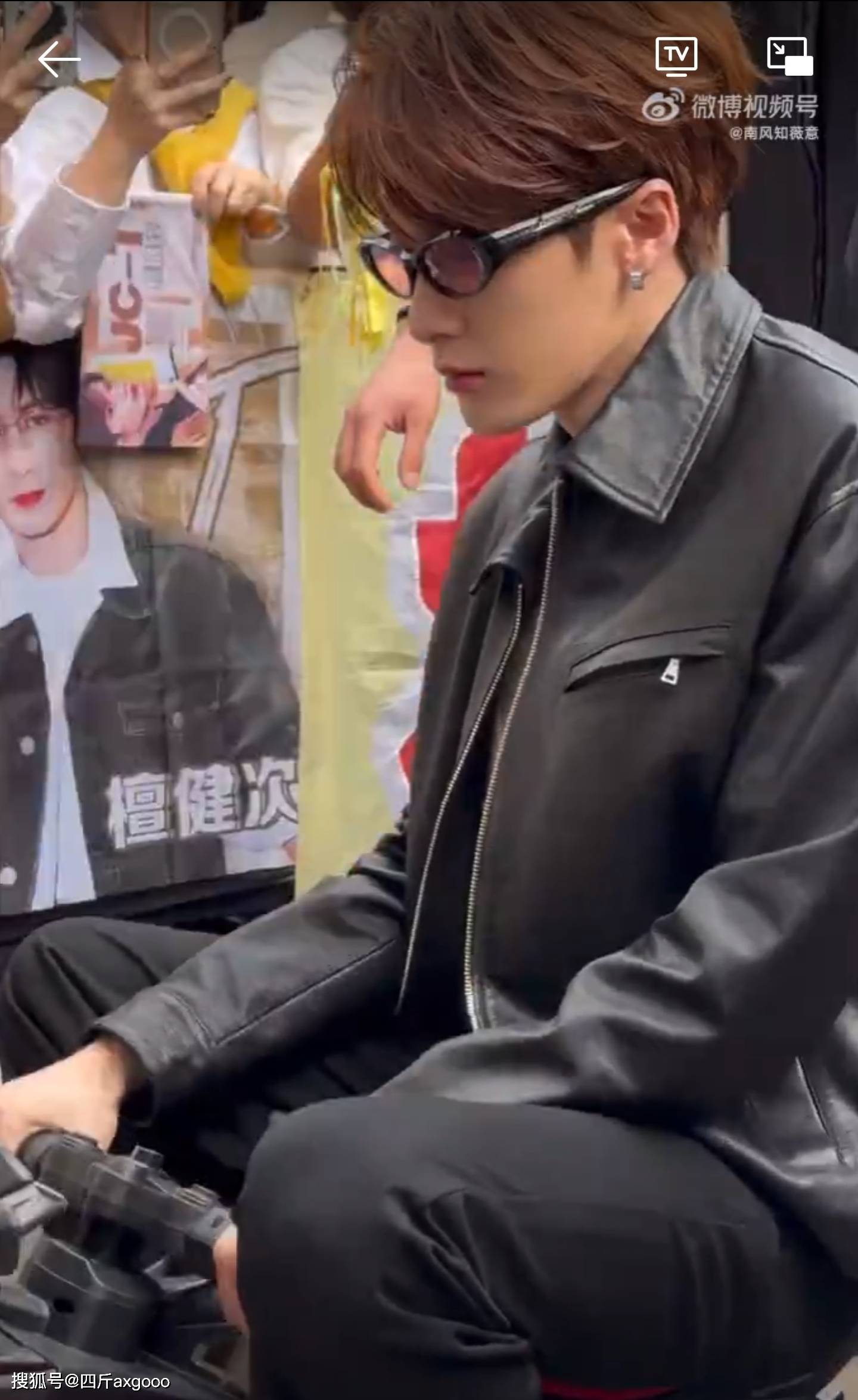 在视频里的确能看到檀健次乘坐着一辆远小于他体格的儿童电动摩托车,在马路上慢慢前进。