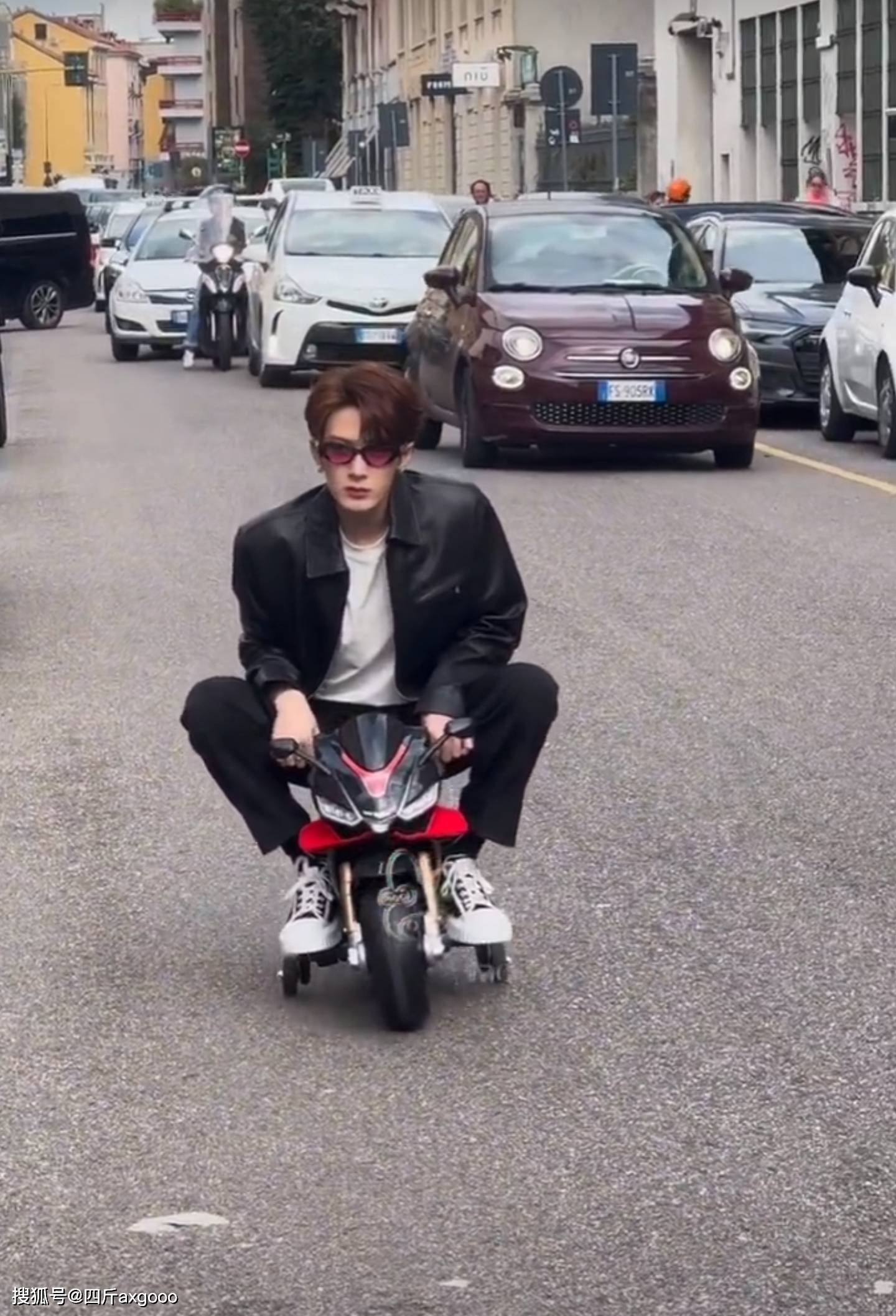 首先,檀健次这次去国外参加时装周确实是骑小摩托车了。