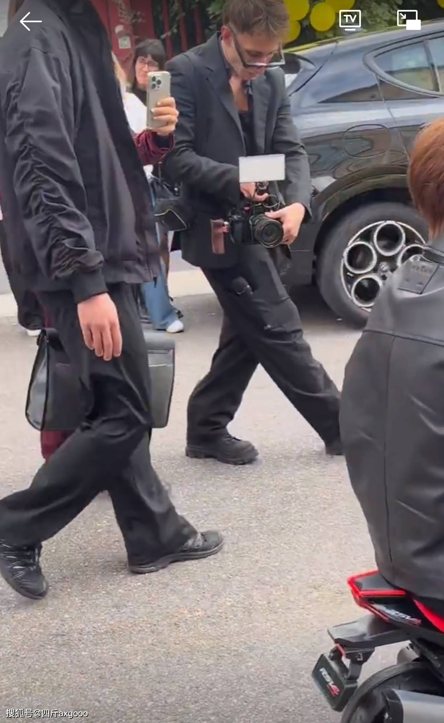之所以后边的车扭扭捏捏不敢超,是因为檀健次周边有几个摄影师在围着他录像。