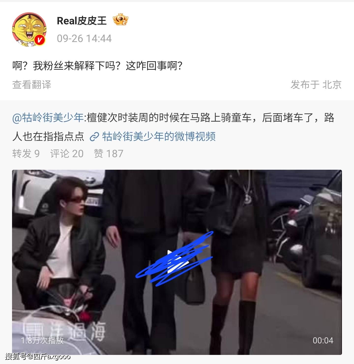 9月26日,有八卦媒体爆料,中国知名演员檀健次去国外参加时装周的时候,在马路上骑童车。