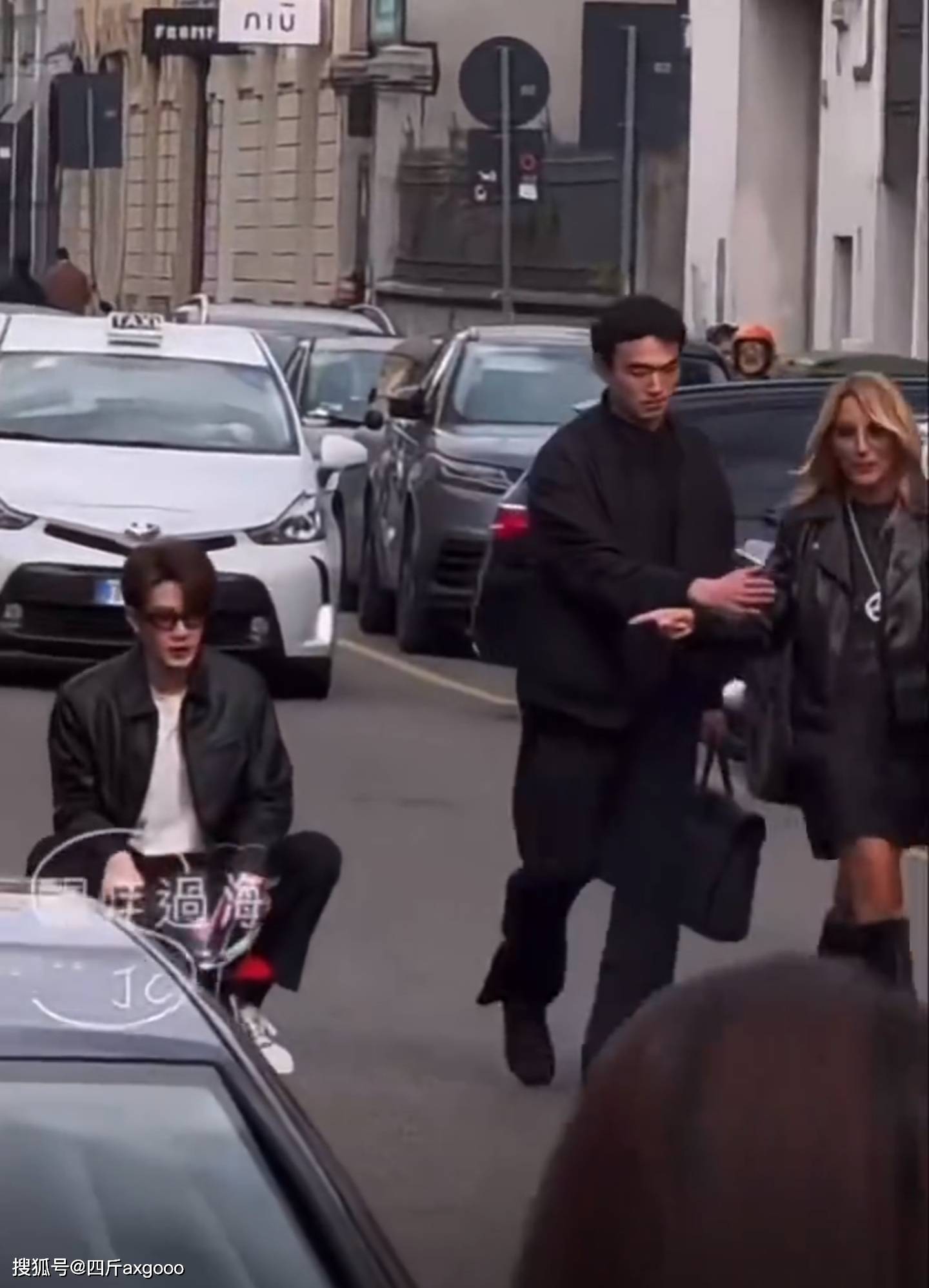 疑似造成后车拥堵,路上还有国外路人对着檀健次指指点点。