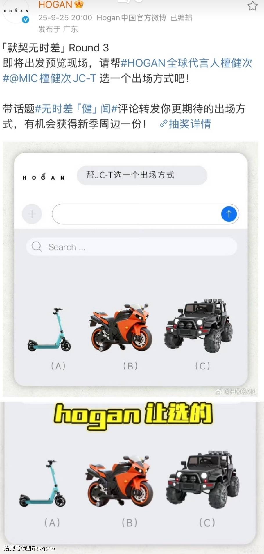檀健次背后的品牌方在网上弄了个投票,问大家想让檀健次用什么交通工具到场?
