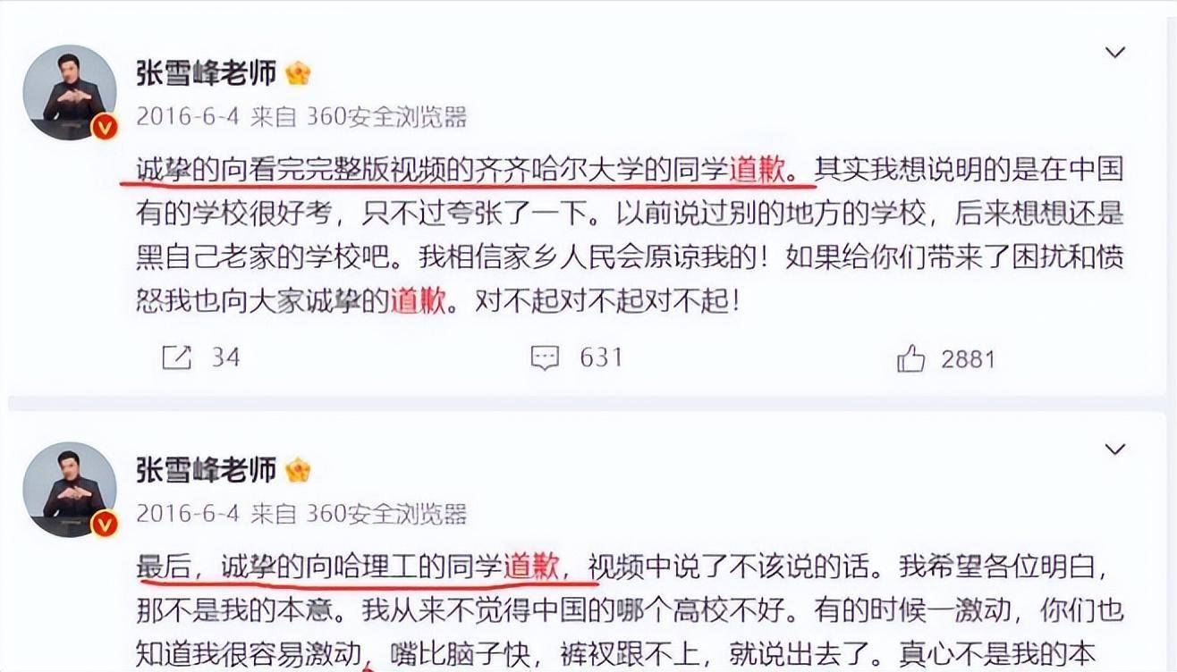 后来学校直接发了律师函要求张雪峰道歉,后续张雪峰在网络上用视频和文字向这两所学校致歉。