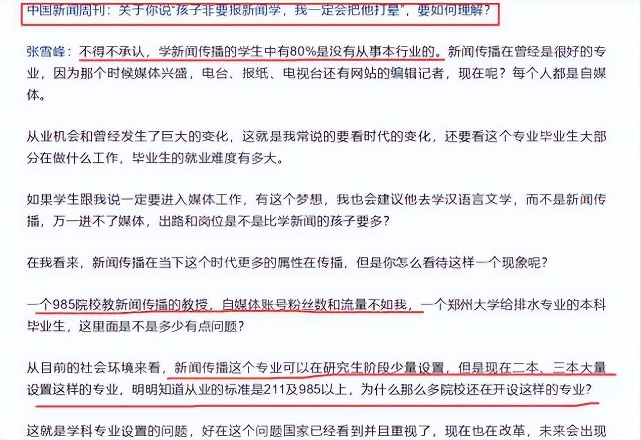 并且张雪峰直言从当前的情况来看,新闻传播这个专业在大量的二本,三本院校都有设置。
