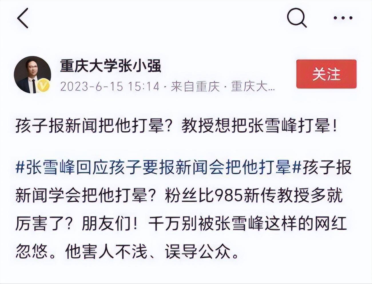 后来重庆大学的教授张小强直接在网络上发布文章怒斥张雪峰误导公众,害人不浅。
