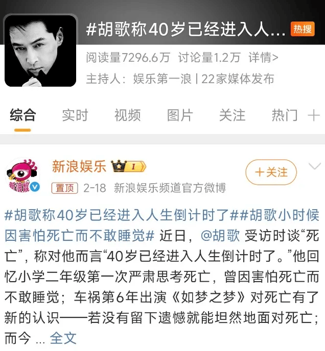 但熟悉胡歌的人知道,这不是矫情喟叹,而是 经历生死之后的一种清醒与坦然。