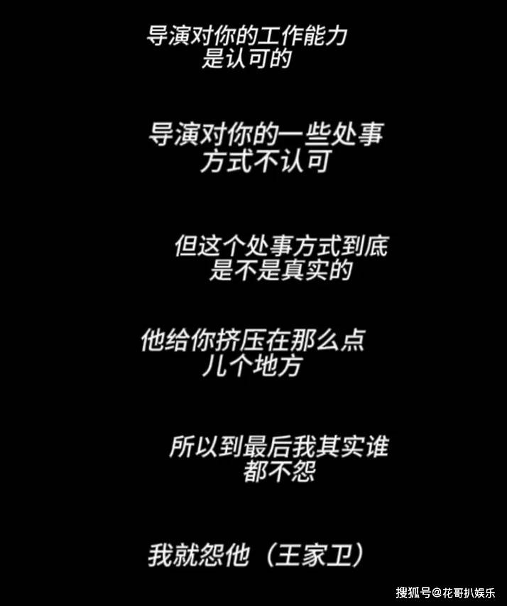 王家卫自然不相信他的说辞,说她和秦雯每次都是老一套。自己的剧本写不完,就去找导演撒娇。王家卫无语:“这和我自己写有什么区别?”