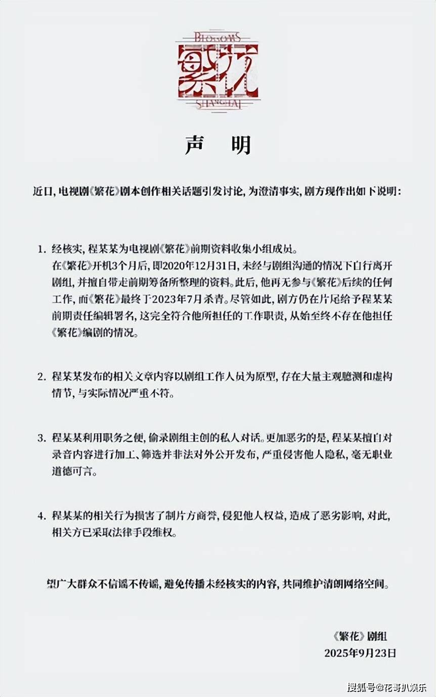 而《繁花》剧组回应,是古二擅自离开剧组,从始至终不存在他担任编剧的情况。