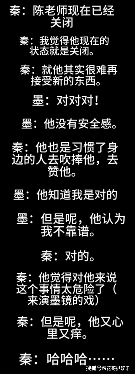 一开始王家卫给她俩梳理剧情,说本来想请陈道明来演,但被拒绝了。秦雯直接接话说,陈道明很装,其实肚子里根本没什么墨水。