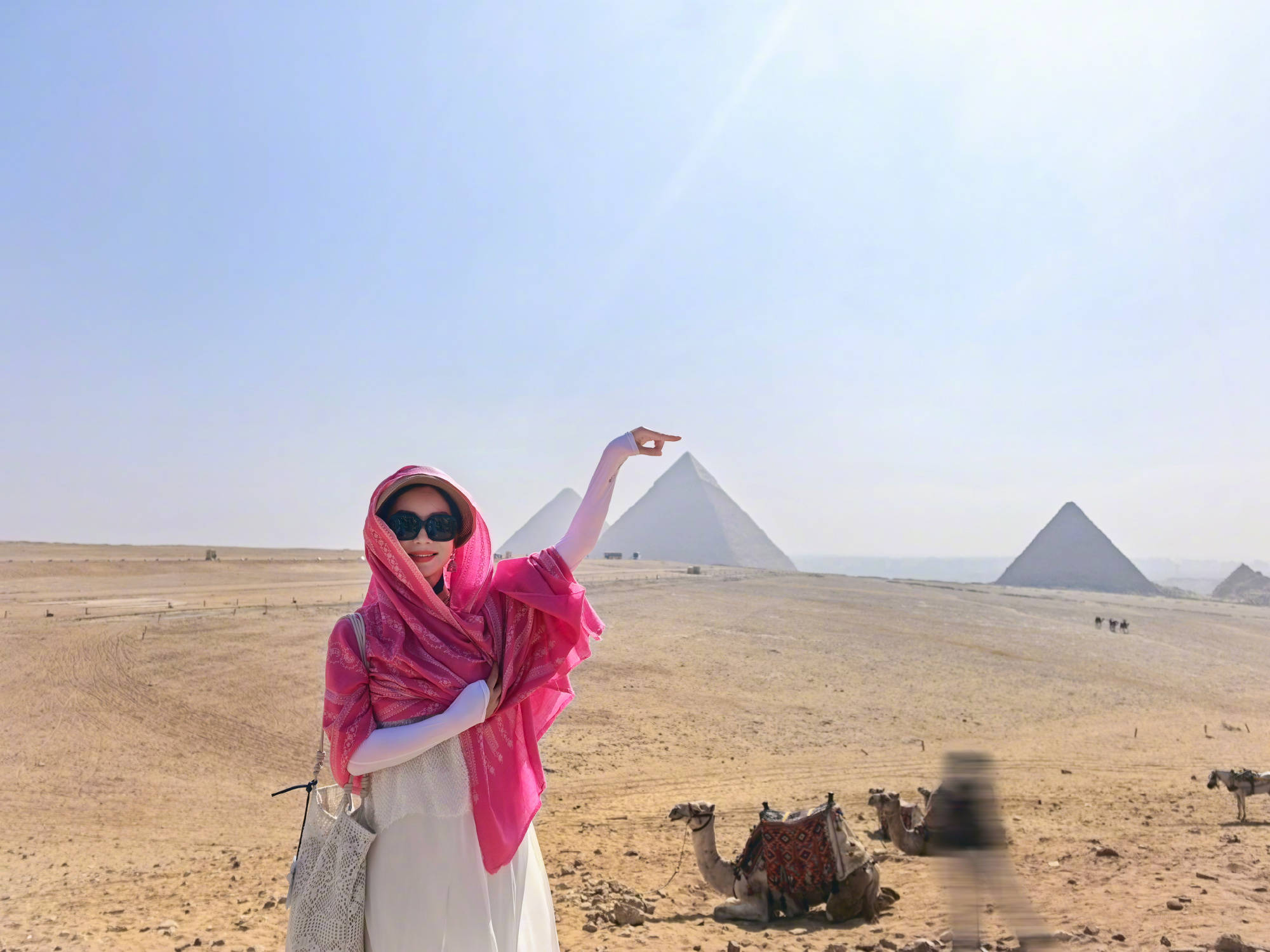 陈数发文称:“粉纱被风掀起时,恰好和金字塔碰了个面。”