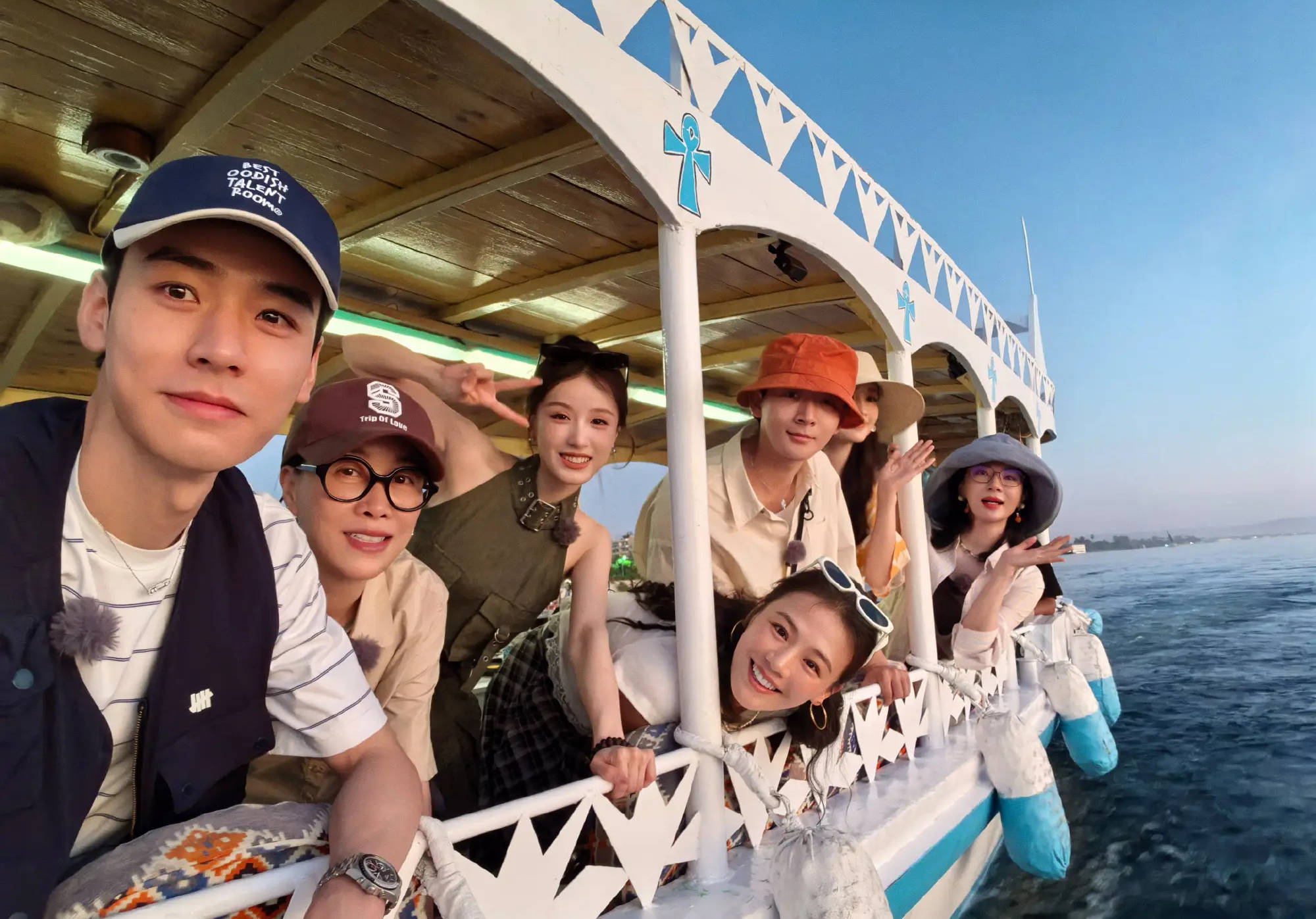 此前,《花少7》成员在海上拍大合照。