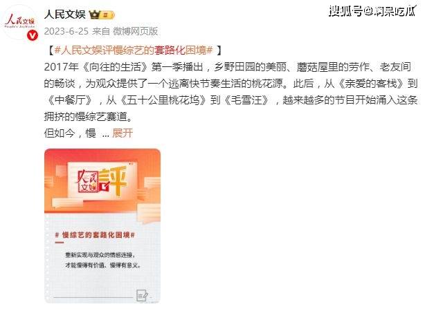 人民文娱曾于两年前发文指出《向往的生活》等慢综艺已陷入套路化困境,创新不足导致口碑持续下滑,央视也曾批评此类节目内容同质化严重。