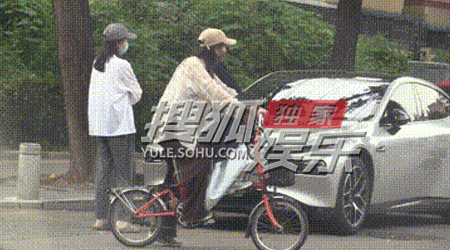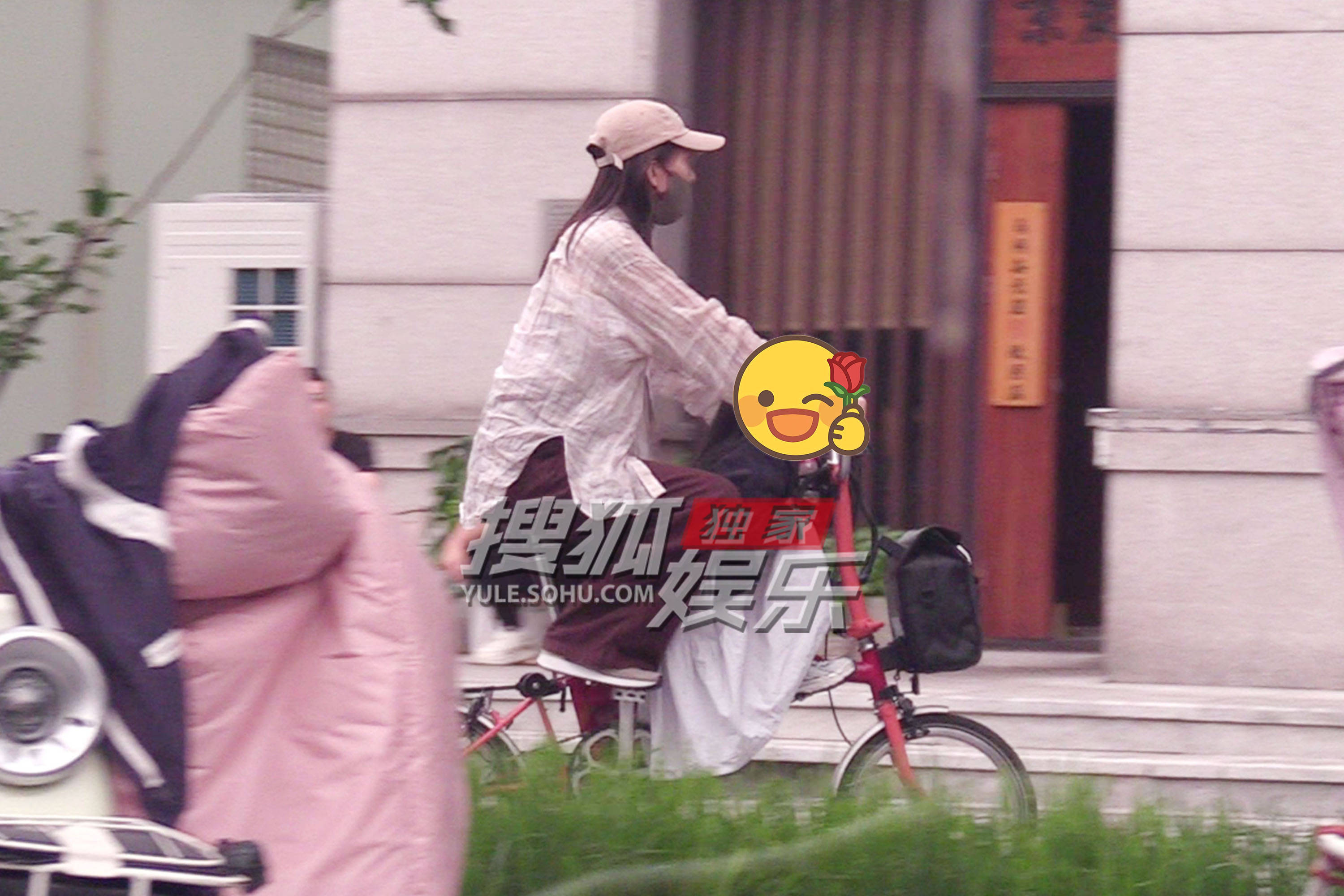 高圆圆卖力蹬车,从学校到家一路都特别丝滑,车技满分。