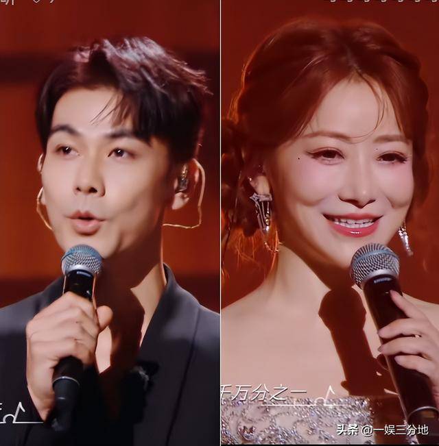 第一对夫妻,就是难得穿的如此正式的陆毅和鲍蕾,两个人的声音很和谐,并且甜。