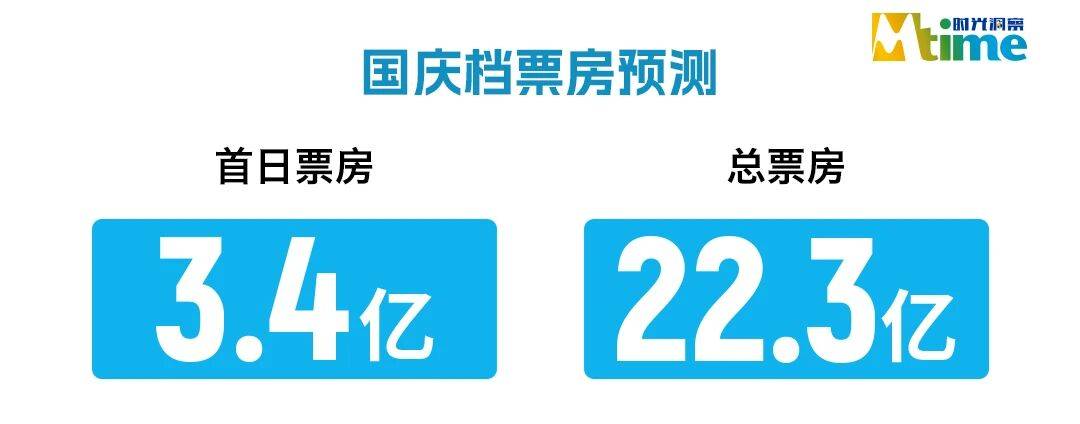 今年国庆档期有8天长假加持,时光洞察预测国庆档总票房22.3亿,有望超过去年国庆档票房21.04亿。10月1日档期首日票房预估为3.4亿,可能成为档期热度最高的一天,10月4日可能迎来新一轮票房回暖。