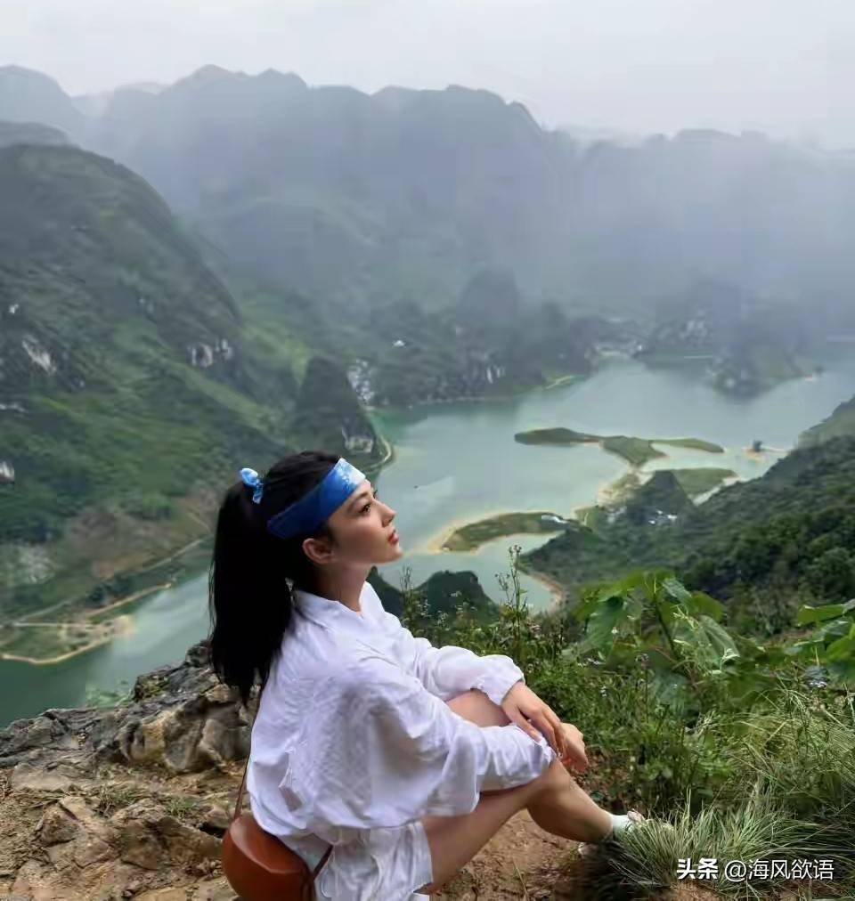 9月27日,张馨予重游广西浩坤湖,一组照片直接刷屏,白色休闲装配蓝色额带,坐在湖边笑盈盈的,浑身透着青春劲儿,压根看不出是当妈的人。