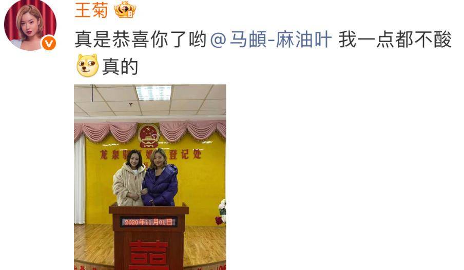 王菊的发文十分俏皮,又从侧面展示了她们坚实的友情。