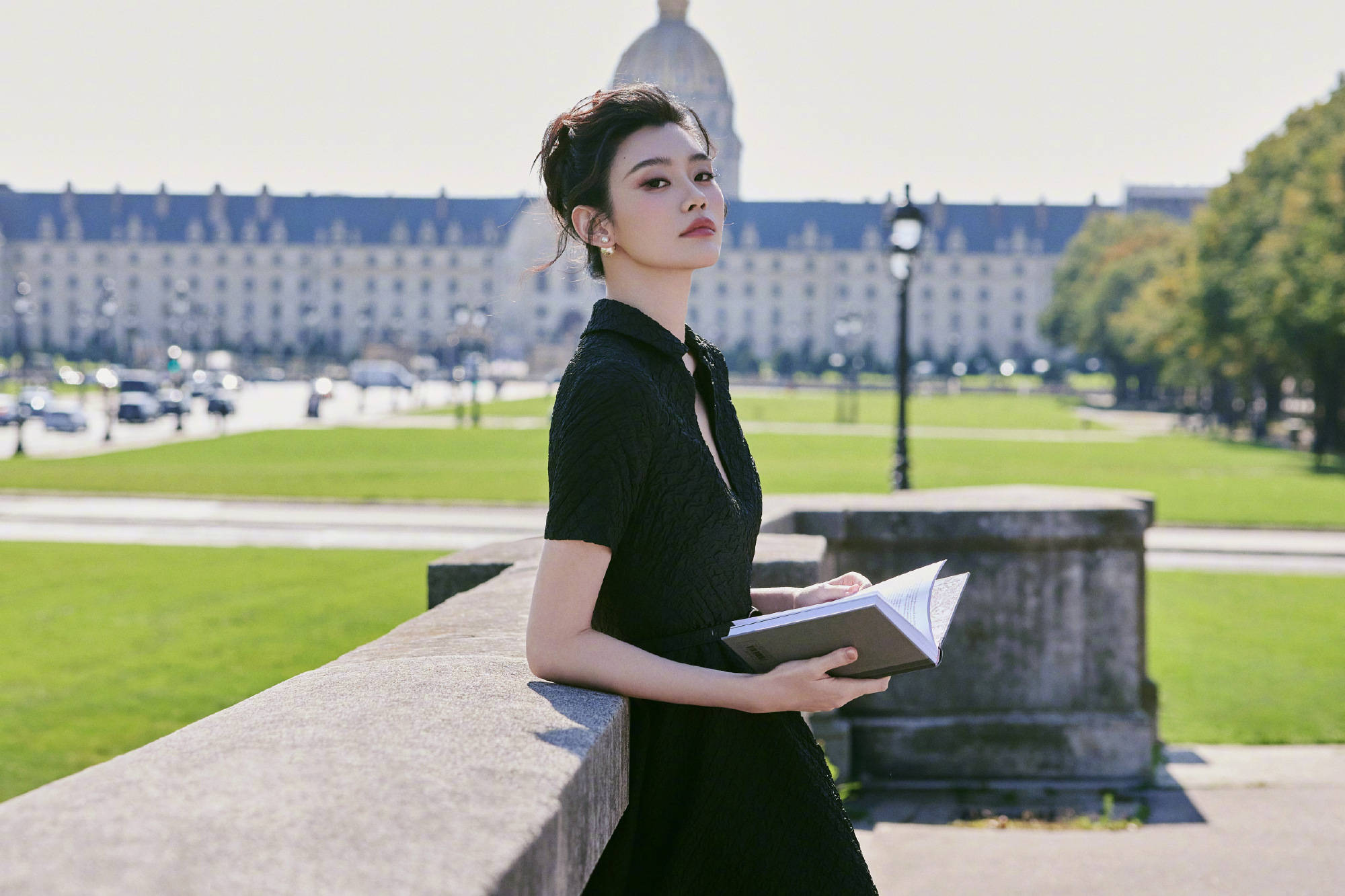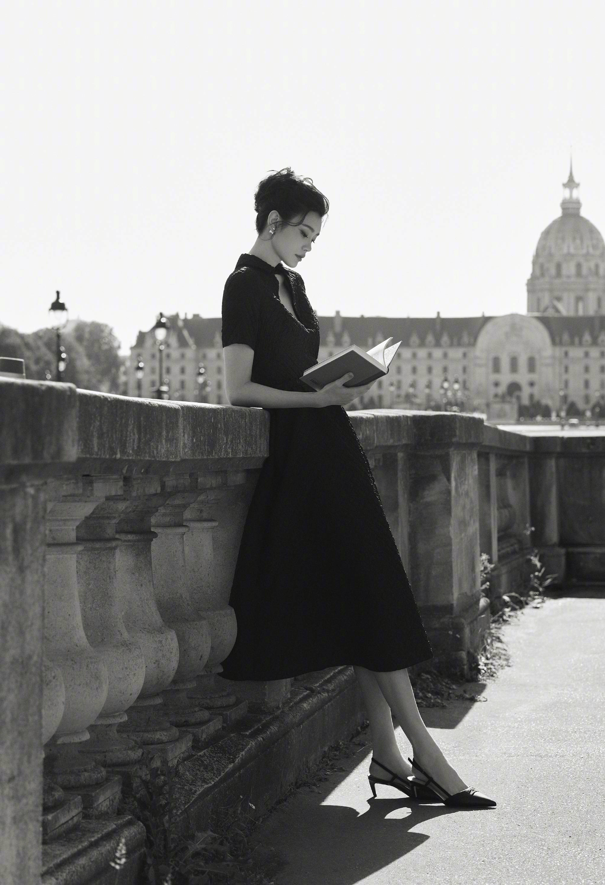 奚梦瑶翻阅书籍,气质优雅大方。
