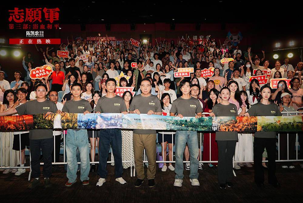 对于《志愿军》三部曲这样的宏大作品,导演陈凯歌也在路演现场分享了幕后制作细节,10000多张图纸,11000多个镜头,造了坦克、飞机、大炮等30多辆,10000多台枪,100万平方米的阵地外景,上甘岭的戏耗费了近30个夜晚,庞大的制作数字背后是主创们严肃对待志愿军故事的态度。当被问及为何会选择“和平”作为收官之作的主题,出品人、总制片人陈红回答道:“曾经有一句话‘我们生活在一个和平的国家,而不是一个和平的世界’,其实打到最后,我们要的就是和平,和平才是最伟大的胜利,是人民的胜利。” 而 聊到细菌战,编剧张珂 借 史实向大家讲述了 拍摄初衷 :“电影最后迎接烈士遗骸回国的那场戏中,有一位参演的志愿军老战士侯亚力奶奶, 她 就是因为美军的毒气弹 而 皮肤瘙痒、起水泡、说不出话,几乎双目失明 。 医护人员为了防止她抓挠,不得已把她的双手绑在身后整整三天三夜。最后她虽然逃过鬼门关,但头发全都掉光了,不得已离开了文工团,到现在也一直是光头。这样的战士还有很多,当时300多人感染,100多人在细菌战中牺牲,第67军的军长李湘就是因为勘察细菌投放的炮弹,最后因脑膜炎等疾病去世了 , 他是 牺牲在朝鲜战场上志愿军最高级别的军事指挥员 。 由此 我们的电影也表现了毒气战、细菌战,希望这样的真相,由电影告诉观众、告诉更多的中国人。”电影透过银幕,让当下的人们再次看到志愿军为和平而付出的一切,正如一位观众说的那样“我们捧着今日的国泰民安走进影院,在银幕的枪林弹雨中,重新触摸到了‘和平’二字背后,那滚烫的生命温度。”