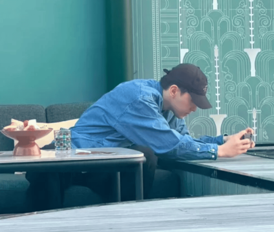 当天在场的似乎还有其他人,邓伦坐在里面角落的位置,看着还有些拘谨。