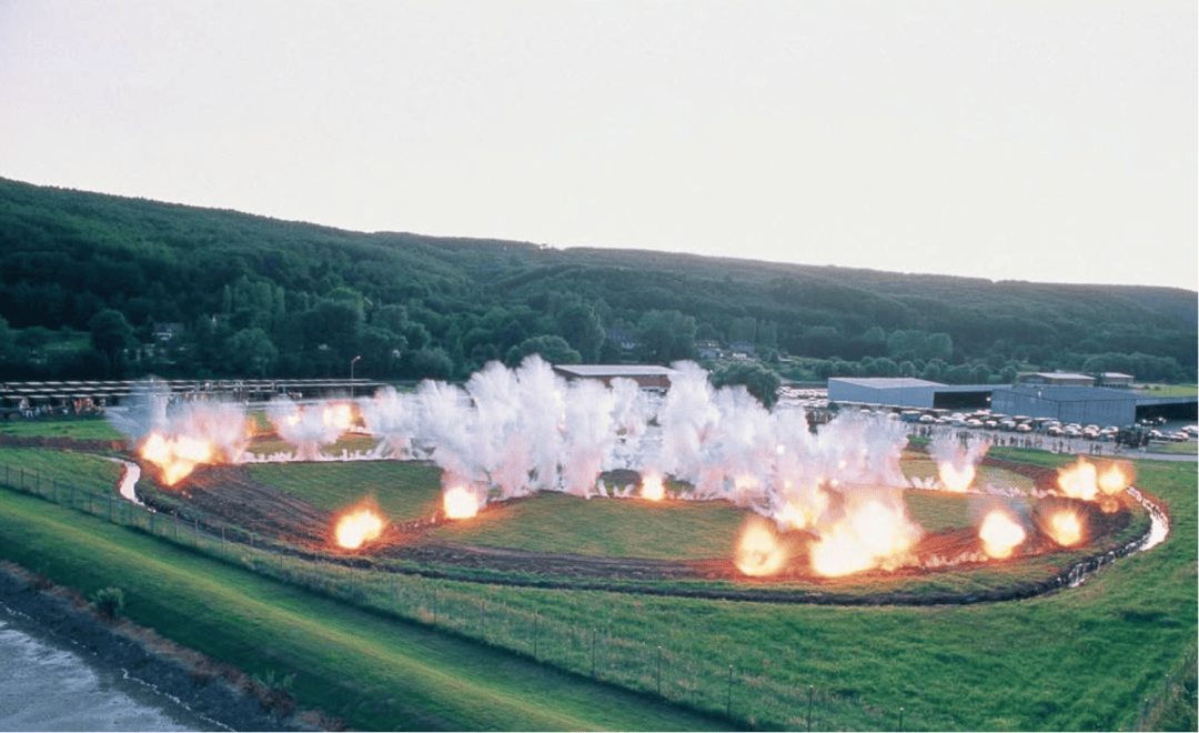 1992年,在德国汉诺威地区的联邦国防军水上训练场军事基地爆破,作品叫《9号外星计划:胎儿运动II》。