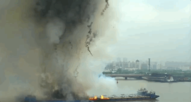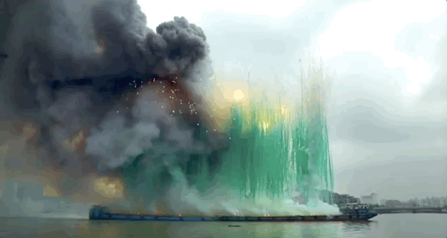 作品名叫《九级浪》,在黄浦江边,最繁华的位置,进行一次白日焰火,全长十分钟,爆炸声极大,浓烟滚滚,搞得上海老百姓们都以为出什么大事了,从现场的效果看,PM2.5爆表了。