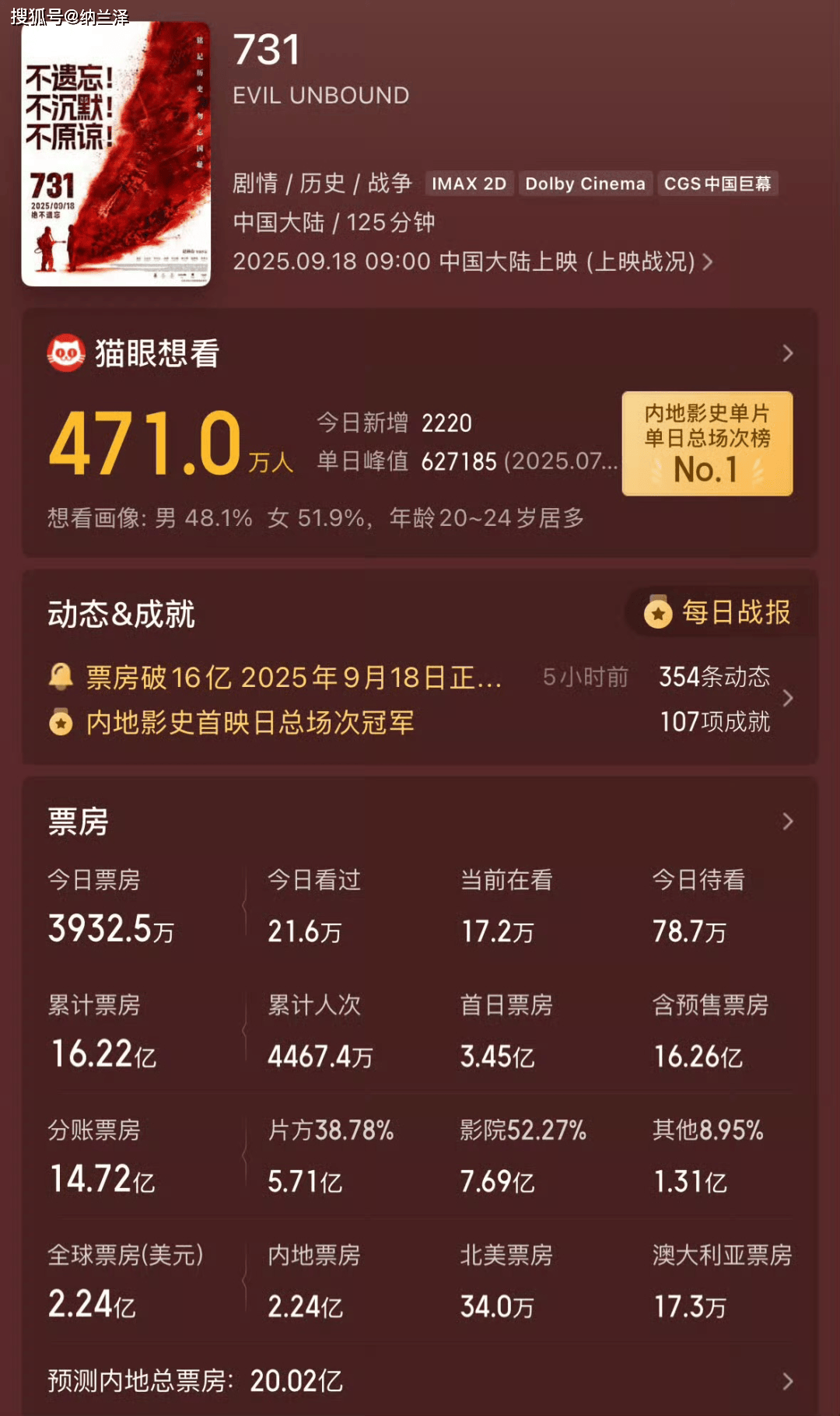 如果说初期的差评让人犹豫,那么《731》在2025年国庆档的票房表现,则用铁一般的数据证明了它的价值。