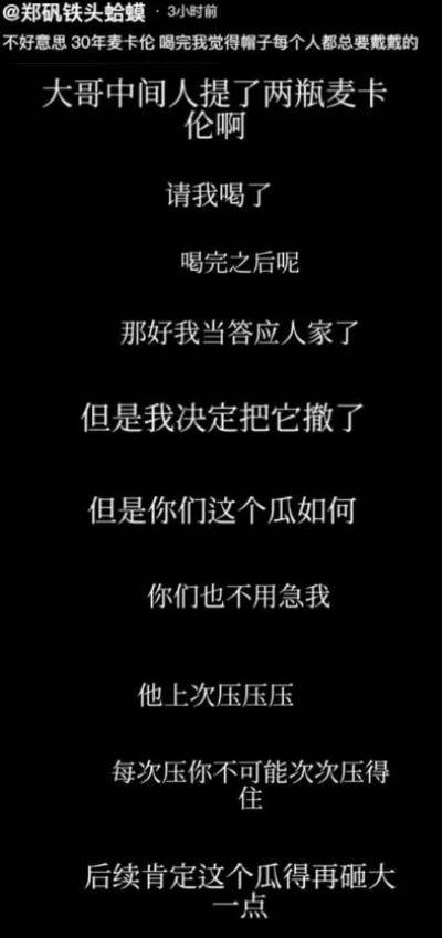 然后呢大佬就请他吃了顿饭,他拿了人家的好处,宁愿自己头上沾点颜色。