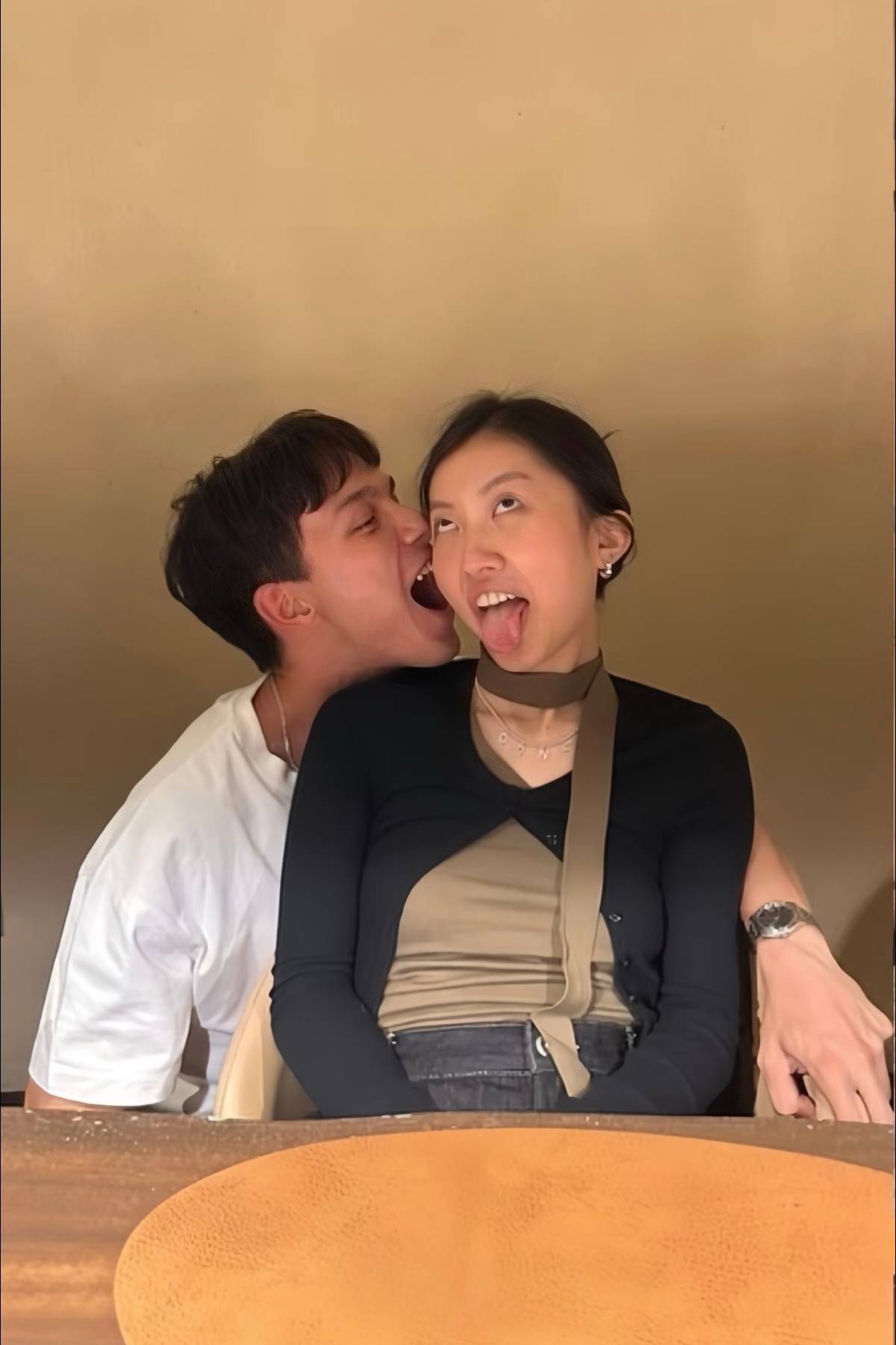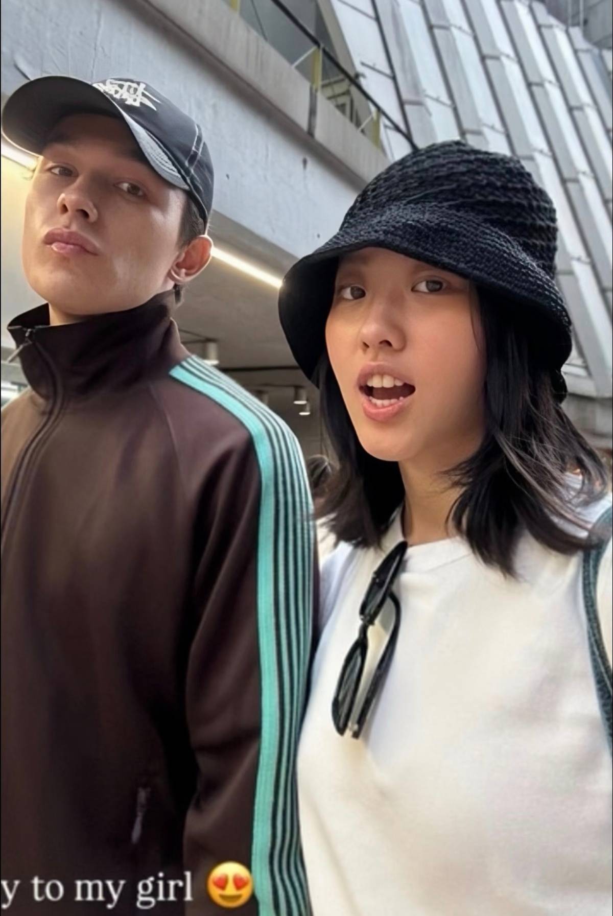 陈康堤与男友同框合影,感情亲密。