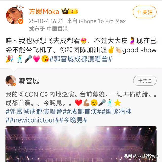 10月4日是郭富城在成都的演唱会,没想到方小姐还特地发了个文章,表示现在不能陪他了。