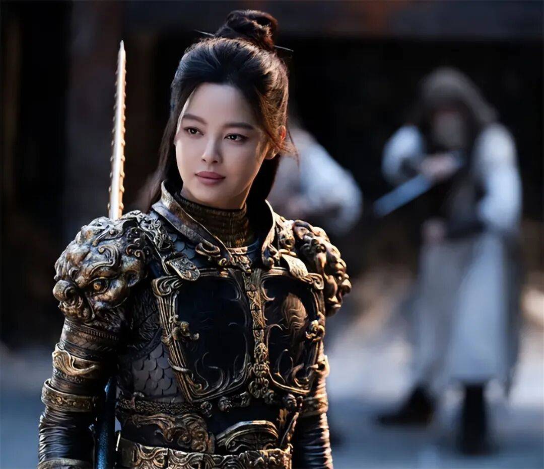 她身着全套黄金甲,龙首形面具、龙纹肩甲和龙鳞盔甲融合了不同朝代的龙纹饰设计。