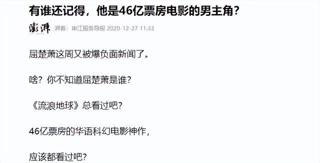 如果没有吴京,没有《流浪地球》,可能屈楚萧还不知道需要多少年才能被大家所熟知。