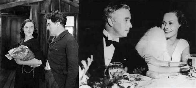 与卓别林相知、合作、秘密结婚又和平分手的女星宝莲·高黛(左为电影剧照,右为两人环球旅行时留影,二人途经上海时曾短暂下榻和平饭店)