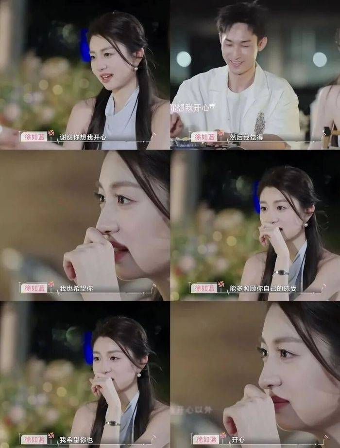 颜值、待人接物、恋爱关系处理都俱佳的徐如蓝,围绕她的“大三角”从节目开始到节目最后都没有停下,观众视角里会觉得她早已与方医生互选多时,而观察室嘉宾却总是因为另一位男嘉宾焦峙衡的勇敢表现惊呼不已,这也形成了网友们对于节目组刻意要制造大三角的质疑,毕竟恋爱信号短信长达几期没有公开,而“方蓝”CP更多日常甜蜜互动也都被剪辑了加更或者粉丝福利。