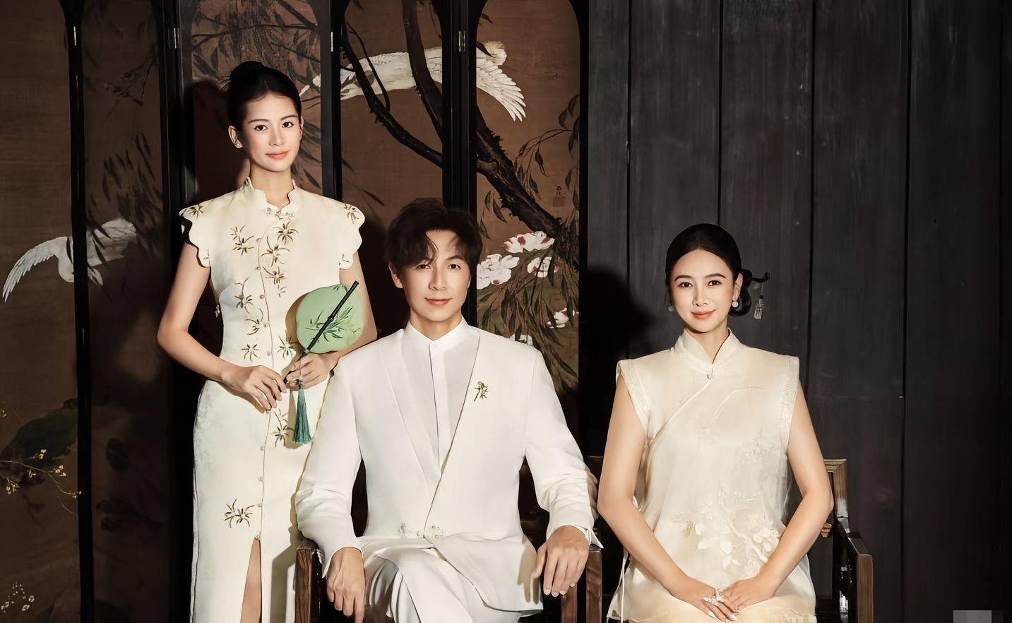 搜狐娱乐讯 10月9日,翁虹夫妇为女儿举办成人礼的视频流出。图中,翁虹一家三口穿着中式服装,女儿站在中间笑容明媚。