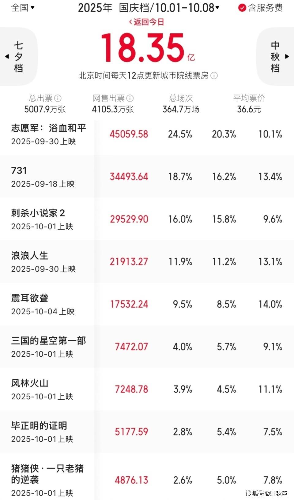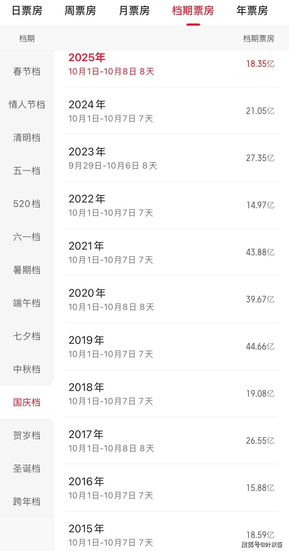 2025年国庆档电影的票房之战已经结束,在比前几年档期多出一天的情况下,成绩却只有18.35亿。