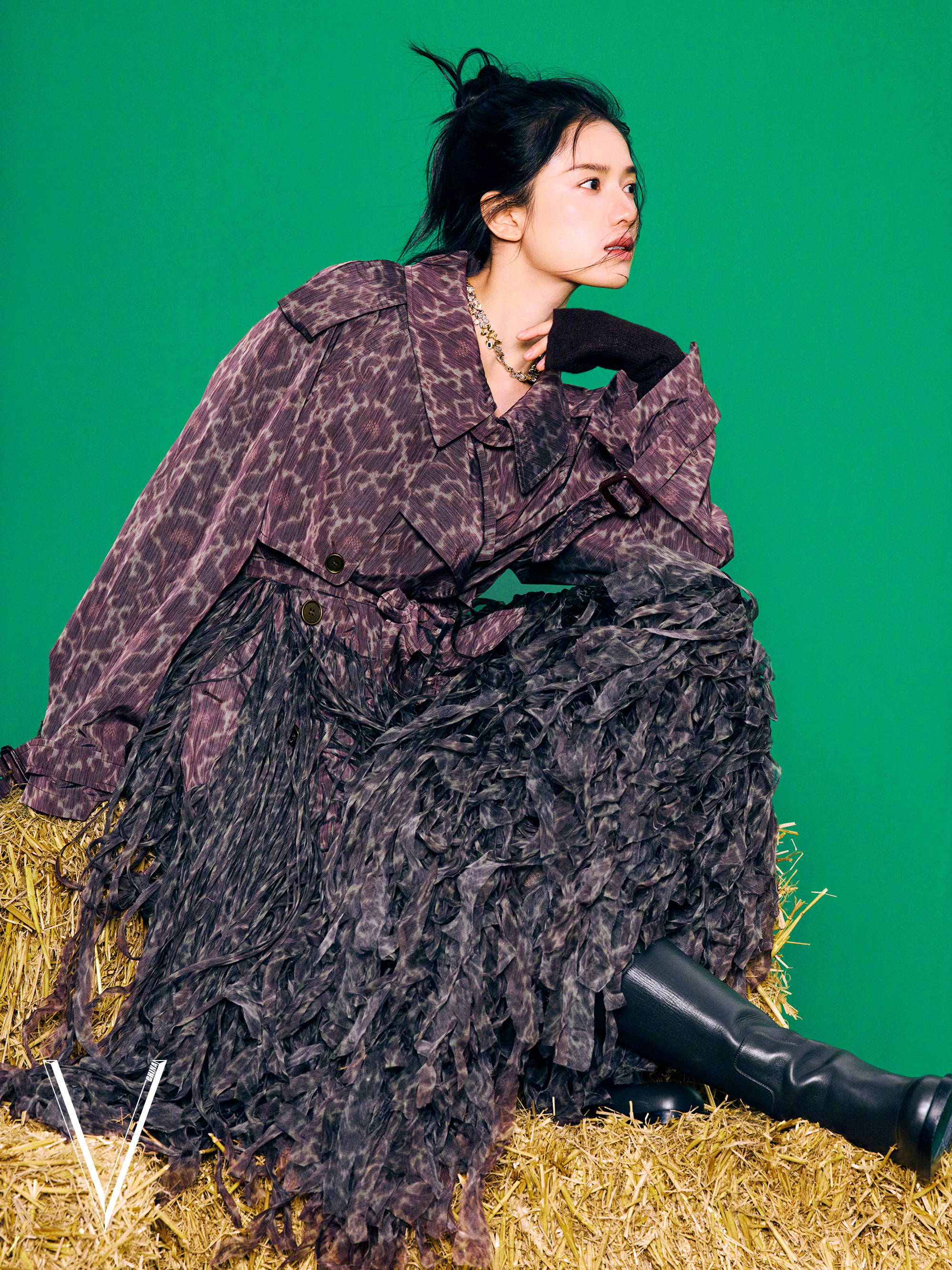 张婧仪身着豹纹风衣,英姿飒爽。