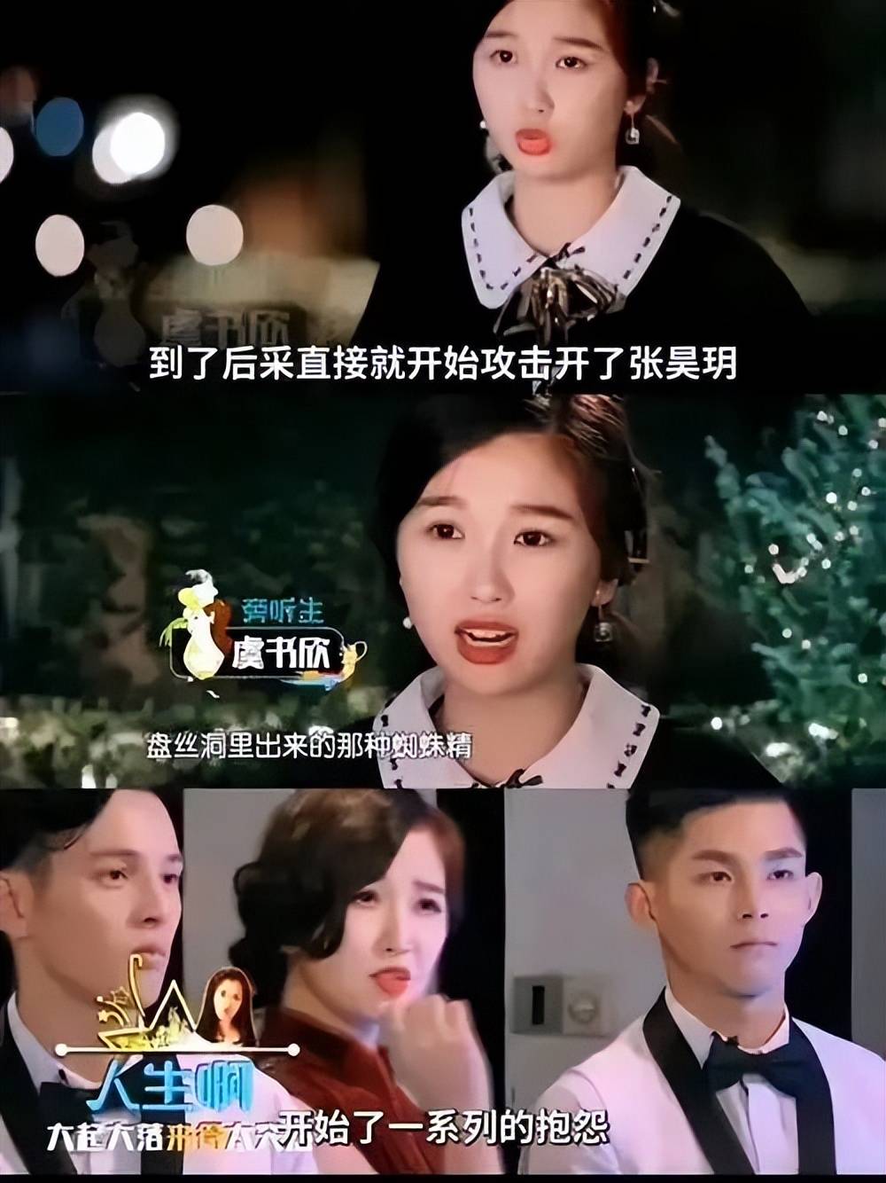 演员张昊玥指控虞书欣在2016年综艺《一年级·毕业季》中对其言语侮辱,骂她“像盘丝洞蜘蛛精”,并联合小团体孤立,致其抑郁退圈。