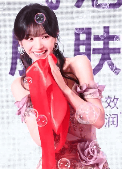 田曦薇惊讶甜笑,手捧鲜花。