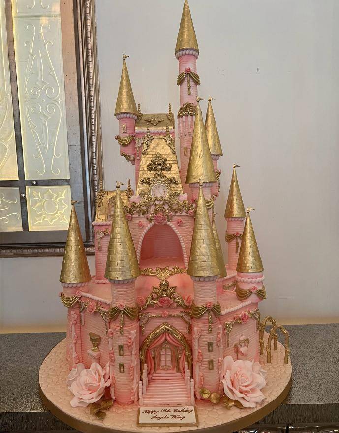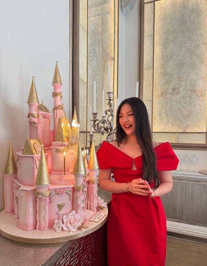 当然,最吸引眼球的当属“城堡款生日蛋糕”,如同艺术品般精致,色彩搭配和图案设计都堪称完美,王诗龄对着生日蛋糕双手合十许愿,遮挡不住的幸福感。