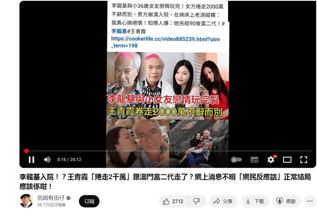 至于未婚妻王青霞,李龙基愤怒说:“他们整天造谣说我老婆认识了别人,还说她跟某个博彩业富二代去澳门,在赌场又搂又亲。说实话,别再讲这种话了!靠没良心赚来的钱,根本不会长久。而且他们说我老婆搭上那个富二代是4月份的事,但我老婆7月份才出狱,你说他们能编造到这种地步!我劝他们别赚这种不义之财,靠中伤别人来赚钱,真的不道德。”