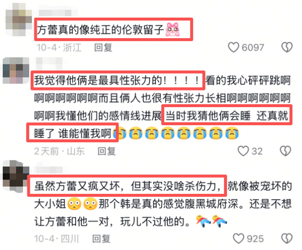 “方蕾啥时候出来”“女配比女主抓眼”的留言刷个不停。